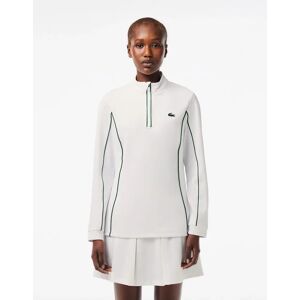 Lacoste Sport Womens Slim Fit Tennis Layering Sweatshirt In White Green - Size 14 Uk