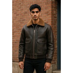 Infinity Leather Mens Brown Bomber Sheepskin Collar G-1 Pilot Jacket - Harbor Lamb Leather - Size 5xl