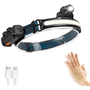 【5 HIGH POWER LED TORCH】- Headlamp with 5 T6 LEDs, 12000 Lumen, zoomable, long lighting distance up to 250 meters. (2 18650 batteries included). 【4 MODES with MOTION DETECTOR】- Long press the button to launch the detector mode. 4 modes (Central Bulb / 4 Small Bulbs / 5 Bulbs / 5 Flashing Bulbs) meet various needs. 【IPX4 WATERPROOF】- All-aluminum alloy body, with an IPX4 protection rating, well waterproof with good drop resistance. Ideal lamp for running, dog walking, fishing, hunting, hiking, cycling, DIY projects, car repair and other activities where there is no light. 【WELL ADJUSTABLE】 - 90° adjustable lamp design for a wide illumination beam. And the adjustable head circumference fits well for adults and children. Perfect gift for family and friends. Waterproof LED Rechargeable Headlamp, Light Up Your Whole World! Hands-Free Bright Lighting for Indoor and Outdoor Activities With the rechargeable headlight, you can reliably lighten your surroundings, work, read, and explore