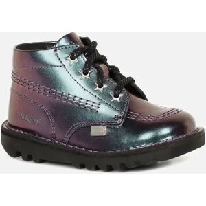 Inspired by outer-space, the Kickers Kick Hi Galactic infant boots are perfect for astronaut enthusiasts and sparkle-lovers alike. Iridescent patent leather uppers are decorated with star eyelets and glitter flecked laces your little one will love. Sturdy and durable, this pair were built to last with grippy soles for stability and padded collars for comfort.