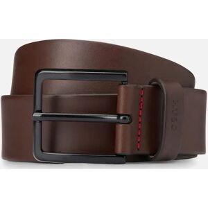 Mens HUGO Gionio Italian Leather Belt with Logo Stamped Keeper A 4cm belt made in tanned Italian leather with a logo stamped into the leather keeper by HUGO. For the best fit we advise ordering a belt one size larger than your waist size. - Rich vegetable tanned Italian cow leather belt - Matte gunmetal hardware - Partially lined - Exterior embossed logo - Width: 4cm - Main material: 100% Cow hide leather. - 50385358-202, Material: Leather.