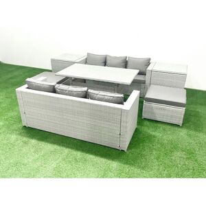 This deluxe rattan sofa set is a great addition to patio or garden, made of high quality PE rattan and durable galvanized steel construction for sturdiness and long lasting.Durability ,and can be put outdoor all year round. • Set Dimensions: • 2 x Sofa with double armrest: 177W x 65D x 66H cm • 2 x Big footstool :65L x 65W x 34H cm • 1 x Rectangular Dining Table :140L x 80W x 69H cm • Light grey mixed rattan with dark grey fabric .Color may some difference due to light or monitor .we are unable to return the item due to color problem . • Items Comes Flat Packed And Easy Assemble,Sturdy Galvanized Steel Tube Metal Frames With Powder Coating To Prevent The Rust • Flat PE Rattan Completely Made By Hand, 5mm Thickness transparent Tempered Glass With Sucker On Surface To Prevent Sliding • Low Maintenance ,Removable Cushion Cover And Easy Move To Different Place.Pls Keep the Cushion Indoor Or put on With Rain Cover When Not In Use . Keep The Furniture With Rain Cover If Not Use For Long