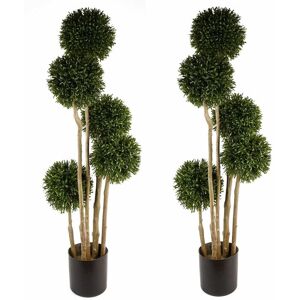 The price is for a pair of trees standing at a majestic height of 120cm (4ft). These exquisite trees exude elegance when placed in a grand tub or planter, suitable for both indoor and outdoor settings. Available in various sizes ranging from 3ft to 5ft in our boutique, these artificial trees boast lifelike artificial leaves. Delivered fully assembled in a spacious box, these trees feature botanically accurate foliage for a highly realistic appearance. Each tree is potted in a simple plastic pot, ready to be showcased. To enhance their beauty, consider placing them in a larger planter and covering with soil, bark, or gravel for a more authentic look. Suitable for indoor or outdoor use in a sheltered area, we recommend protecting them from extreme temperatures to prolong their lifespan. This product is designed for indoor use only.