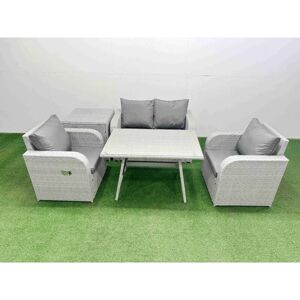 This deluxe 6 piece rattan sofa set is a great addition to patio or garden, made of high quality PE rattan and durable galvanized steel. Pls kindly leave your mobile number at checkout for not delaying your shipment . Set dimensions: • 2 x Reclining chairs Size: 74W x 69D x 79H cm • 1 x Love Sofa Size: 124W x 67D x 79H cm •2 x Side table :65L x 65W x 66H cm • 1 x Table Size: 105L x 50W x 48H • Sofa Weight Capacity: 250kg • Table Weight Capacity: 80kg Light grey rattan with dark grey fabric .Color may vary due to light or monitor .we are unable to return the item due to this problem .Please contact us before purchase if you have requirements on color saturation . The 2 armchairs are adjustable, you can adjust the inclination of the chair back from 90°-130° through the button . Items Comes Flat Packed And Easy to Assemble,Sturdy Galvanized Steel Tube Metal Frames With Powder Coating To Prevent The Rust, Ergonomic High Back And Declining Design For Extra Comfort Flat PE Rattan Completely