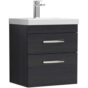 The Athena vanity unit is one of the most popular and versatile models in Nuie's portfolio. Available in 4 popular colour schemes, Athena basin cabinets benefit from easy-to-use strap handles and soft-closing doors and drawers as standard. The Athena model can be personalised by choosing between multiple basin designs, or upgrading the design and colour of the handles. Features and Benefits: Contemporary wall hung vanity unit providing functional storage Contemporary charcoal black woodgrain finish - a dark wood shade Includes thin-edge ceramic basin featuring large bowl size and deep 50mm profile 2-drawer configuration, featuring soft-closing action for premium feel Supplied with satin nickel D-shaped strap handles (192mm centres) as standard Cabinet carcass manufactured from 16mm MFC with 18mm MDF fascias (door/drawer fronts) Vanity unit supplied rigid - no assembly required on the carcass/cabinet Unit includes pre-drilled blind holes for installation of handles (supplied loose)