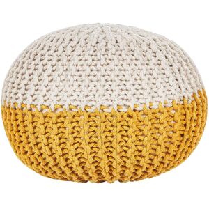 Beliani - Modern Knitted Round Pouffe Ottoman Cotton Yellow Beige 50 x 35 cm Conrad | ✔ Check At Store | £59.99 |
