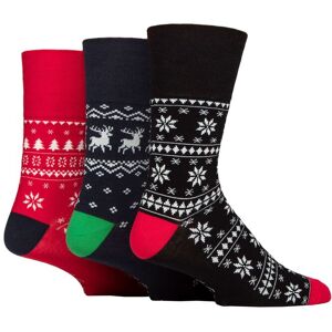 Mens 3 Pair SOCKSHOP Gentle Grip Cotton Christmas Socks Red / Navy 6-11 - Multi Coloured - Size: 6-11 Mens