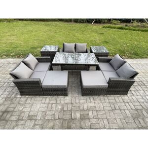 This deluxe outdoor rattan sofa set is a great addition to patio or garden, made of high quality PE rattan and durable galvanized steel construction for sturdiness and long lasting.Durability ,and can be put outdoor all year round. Perfect set to sit round with your family and friends. • Set Dimensions: • 3 x Lovesofa :124W x69Dx79H cm • 1 x Dining Table :140L x 80W x 69H cm •Dark grey mixed rattan with dark grey fabric .Color may Vary due to light or monitor .we are unable to return the item due to this problem .Please Consult Before Purchase if you have requirement on color saturation. • Items Comes Flat Packed And Easy Assemble,Sturdy Galvanized Steel Tube Metal Frames With Powder Coating To Prevent The Rust, Ergonomic High Back And Declining Design For Extra Comfort. • 8 CM Thick Seat Cushion And Without Back Cushion As Per Picture . 9 CM Wide Armrest ,Ergonomic High Back , Thick And Declining Back Design Gives You More Comfortable. • Flat PE Rattan Completely Made By Handmade,