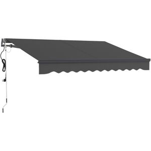 Enjoy the outdoors in style with the Outsunny electric awning! Effortlessly extend this garden awning canopy with a remote control or manually twist the hand crank. Crafted from rust-resistant aluminium and 280g/ square meter polyester that blocks harmful UV rays, this retractable awning lets you lounge comfortably, adjusting the tilt from 45 degree to 85 degree to cast your shade over your patio or window.