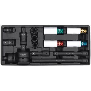 - Chrome Molybdenum socket, hardened, tempered and anodised for corrosion resistance. - Suitable for use with impact tools. - 6-Point socket is externally and internally sleeved to prevent damage to alloy wheels and nuts. - Colour-coded for easy size selection. IMPORTANT INFORMATION Alloy wheel impact sockets have an ultra thin walled design permitting a limited torque range. They are suitable only for wheel nuts and exempt from lifetime guarantee.