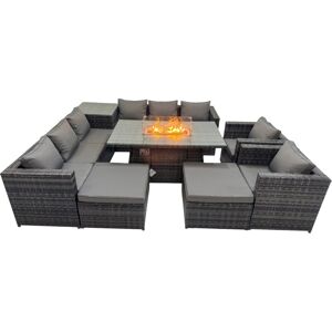 Important: Please put the gas fire pit on the glass top not under the glass .Do not cover the igniter with lava .please refer to the picture in the listing. we strongly recommend using 5 kg gas tank. Before using the fire pit ,please check it carefully if there is any leakage at the joint place or the hose . if the gas bottle is not fixed correctly or the hose has some leakage it may cause danger . Set dimensions: • 2x 3 Seater Sofas Size: 177W x 65D x 66H cm • 2x Chairs : 75L x 65W x 66H • 1x Side table:65L x 65W x 66H cm • 2x Small fully assembled footstools:40L x 40W x 34H cm • 1x Firepit Table : 140L x 80W x70H cm Dark grey mixed rattan with dark grey fabric .Color may vary due to light or monitor .we are unable to return the item due to this problem .please consult before purchase if you have requirement on color saturation. Great Price Compared With Other Online Or Offline Store For Fire Pit Set. Items Comes Flat Packed And Easy to Assemble,Sturdy Galvanized Steel Tube Metal