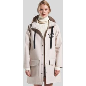 A new take on a classic. The signature Stutterheim Mosebacke raincoat reinterpreted for Lyle & Scott is an A-line coat for women, featuring a chunky rubber tonal eagle on the chest and Lyle & Scott's 150th jubilee tartan on the inside lining. The hard-wearing waterproof fabric is tailored with double-welded seams, making it impossible for any moisture to get through. Ease of movement and comfort are achieved with underarm eyelets and a drawstring hood. - Heavyweight 530 gram fabric - Completely waterproof with double welded seams- +20,000 mm water column pressure - Rubber tonal eagle on chest - Lined with Lyle & Scott 150th jubilee tartan- Snap metal button closures - Drawstring hood with black webbing tapes - Patch pockets with flap closure - Underarm eyelets for ventilation - Designed in Stockholm - Made in Europe