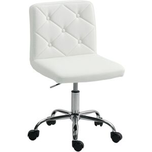 Discover the elegance of the HOMCOM comfy office chair, where button tufting meets practicality for your home office or vanity. This armless, space-saving design features a PU leather surface that mimics cat scratches for a unique texture that's both easy to clean and wear-resistant. Adjust easily with the study chair's smooth swivel seat and versatile height range, ensuring comfort and style in any setting. HOMCOM Modern Vanity Computer Desk Chair with Rolling Wheels, White