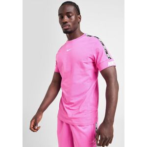 Nike sportswear, pull on this men's Repeat Tape T-Shirt with White and Black taping down the short sleeves, this tee features a ribbed crew neckline and thick, stretchy cuffs to the sleeves. - - . Made from soft cotton fabric, it's finished off with Volt Nike branding on the left cuff and the Swoosh to the chest. - - . Machine washable.