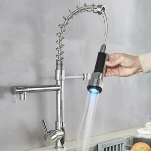 PULL-OUT SPRAY FOR KITCHEN FAUCET: Our kitchen faucet can pull the spray up to 45cm, which can maximize the radius of action around the sink. Thanks to the counterweight ball, you can put the hand shower back in place easily. In addition, the extractable hose is made of anti-shock silicone, it is a neat design for noise reduction when you pull the hand shower. KITCHEN SINK MIXER WITH 2 WATER JETS : Normal jet, anti-splash, thanks to Neoperl Foamer ABS, the water flows smoothly and saves 30% water; The shower spray is ideal for rinsing dishes, which easily removes stains. You can change the spray according to your actual needs. SUITABLE HEIGHT AND 360° SWIVEL TAP: The matching ergonomic design gives you a more comfortable using experience. 360° rotatable sink faucet, perfect for your single or double bowl sink, easy to rotate to the other bowl, then you easily wash every corner of the sink. EASY ASSEMBLY FOR THIS TAP SPRAY: The stretch hose is equipped with a special connection, so you